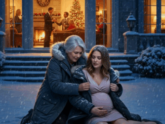 On Christmas Day, I showed up unannounced at my son-in-law’s home and discovered my daughter trembling in the snow. Meanwhile, inside the house, his family sat comfortably by the fireplace, laughing and clinking their glasses in celebration. I lifted my daughter into my arms and brought her inside—then spoke five words that instantly froze every voice in the room.