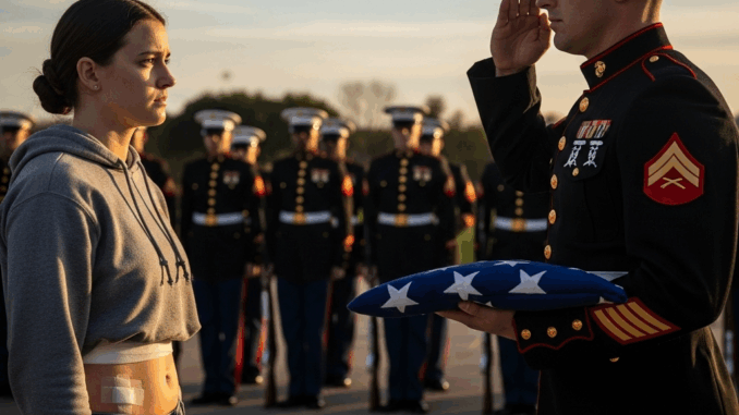 There was a long silence. Then he asked, “Would it be okay if I visited again?” Emily smiled. “I’d like that.” As the sun climbed higher and the last of the Marines disappeared into the distance, Emily looked at the flag in her lap and the coin in her hand. dot. It didn’t feel real, but it was. She hadn’t just come home.