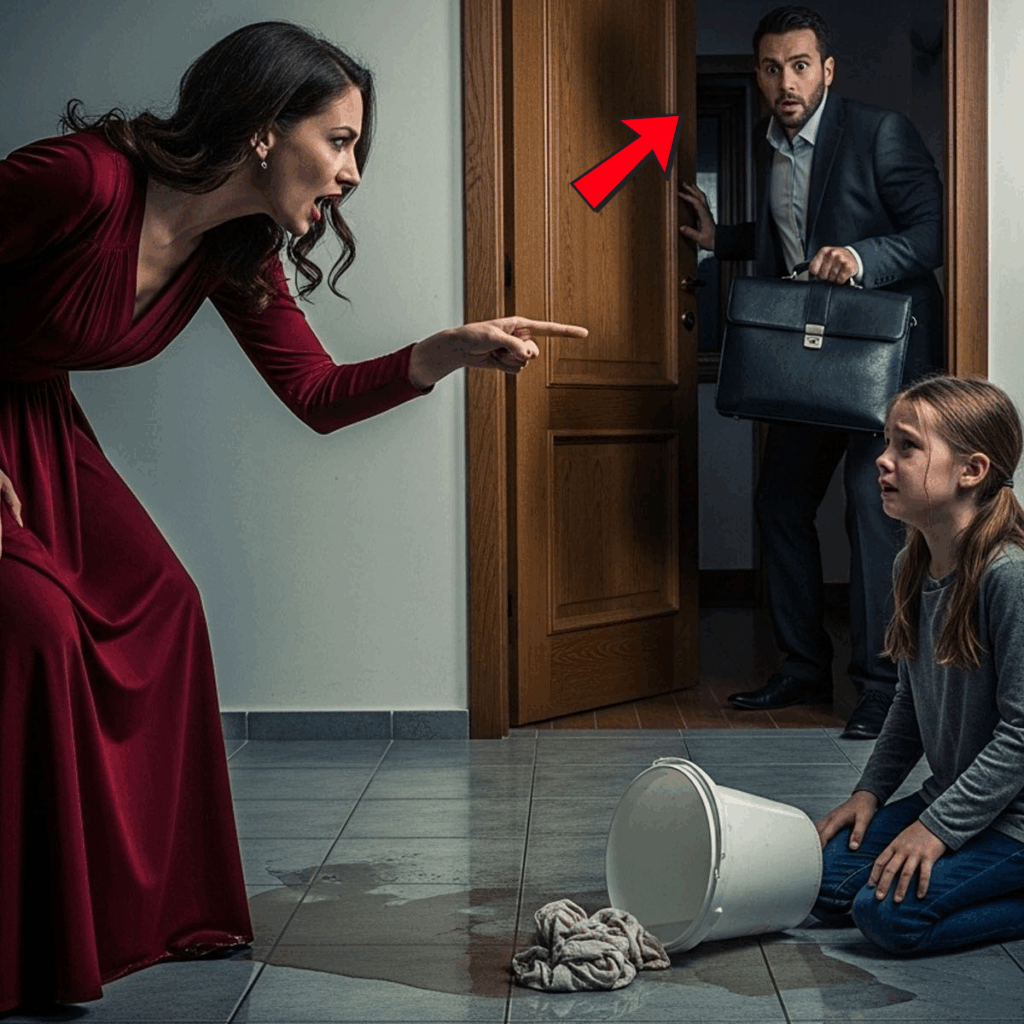 But in her childish clumsiness, the bucket slipped. The impact echoed throughout the house. Sophie, trying to avoid disaster, slammed her hand hard against the metal rim. A sharp pain shot down her arm, and between sobs, she uttered her heartbreaking plea: