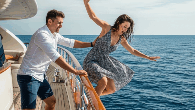 “I prepared something too,” he said with a tired-looking smile. “Let’s go out to sea. I rented a private boat. Just you and me.” Casie’s eyes lit up. “You did this,” she whispered, hugging him tightly. “You’ve been so distant lately. I thought you’d forgotten.” He hugged her back, but his arms were stiff. She almost didn’t notice. She saw only the man she still loved. For her, this trip meant a new beginning. For Olivier, it was goodbye. As they reached the private dock, the sea breeze caressed Casie’s hair. She closed her eyes for a moment and breathed in the salty air.