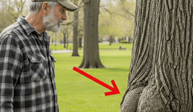 With each blow of the axe, the dry sound of the trunk resonated in the air. The curious villagers approached, intrigued. When it finally fell, the farmer began to cut away the swollen part… and what appeared inside left everyone speechless.