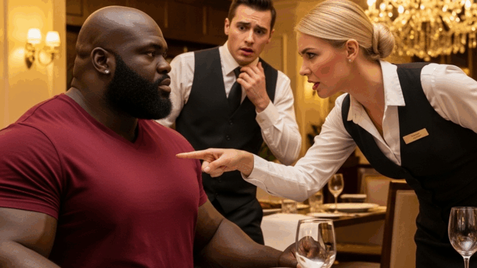 Shaquille O’Neal stepped into a luxurious restaurant located in the heart of the city, dressed in casual clothes with a few wrinkles, looking as if he had just gone through an ordinary day. He chose a small, discreet table, trying not to draw attention, as the sparkling light from the crystal chandeliers illuminated the space around him. However, before he could even place an order, a waitress approached him with a contemptuous look and an air of arrogance.