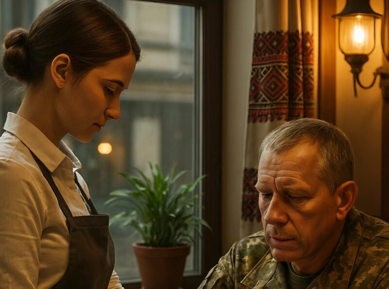 That day, in the corner by the window, sat a man in camouflage uniform, with gray hair — a veteran. He sipped his coffee slowly, lost in thought. His eyes followed Lili constantly.