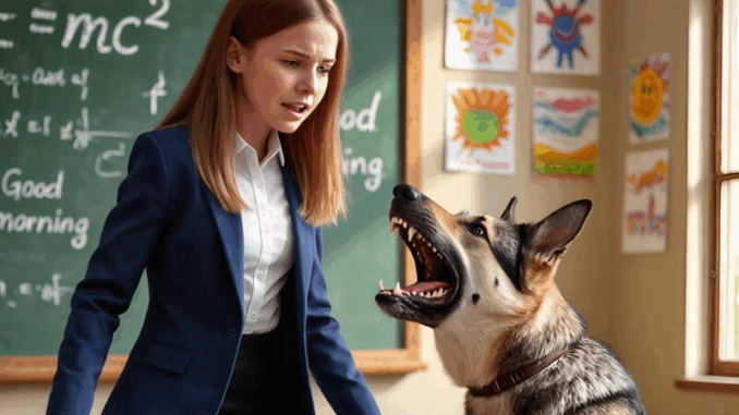 The German Shepherd lunged at a girl in the third row, barking loudly. She was a modest, quiet student named Marie—she usually sat in the back rows. Today, she stood next to her friends, holding a notebook against her chest. At first glance, she looked like an ordinary, shy girl.