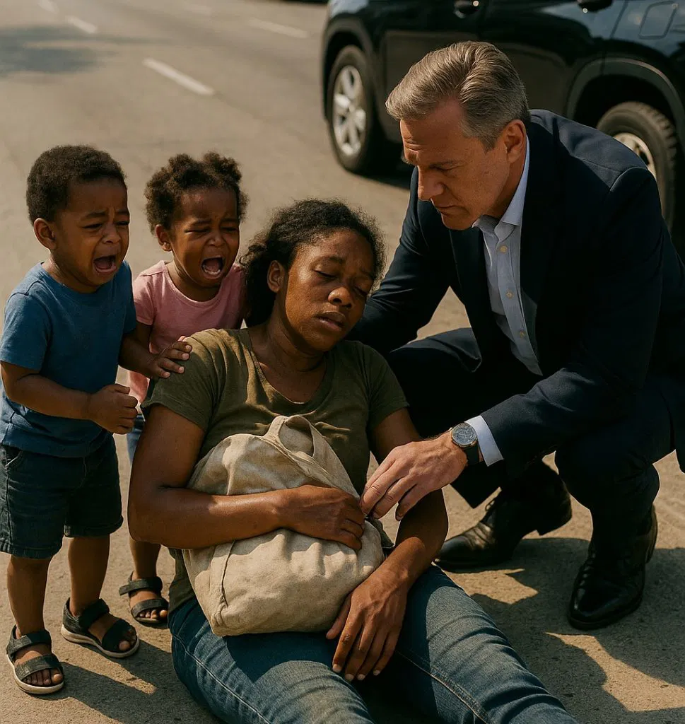 And then, a sleek black SUV slowed to the curb. The tinted window slid down, revealing a man in his early fifties—Jonathan Pierce, billionaire entrepreneur, a name often splashed across business magazines and financial networks. He had been on his way to a meeting, but the sight of two desperate children clutching at their unconscious mother made his chest tighten.