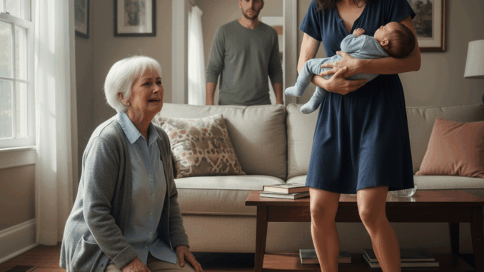I rushed toward the living room, my heart racing. What I saw made my blood turn to ice. Martha was on the ground, her face flushed with pain and embarrassment. The flowers she’d been carrying were scattered across the hardwood floor, water spreading in a dark stain. Everly stood over her, holding our grandson, her face twisted with disgust.