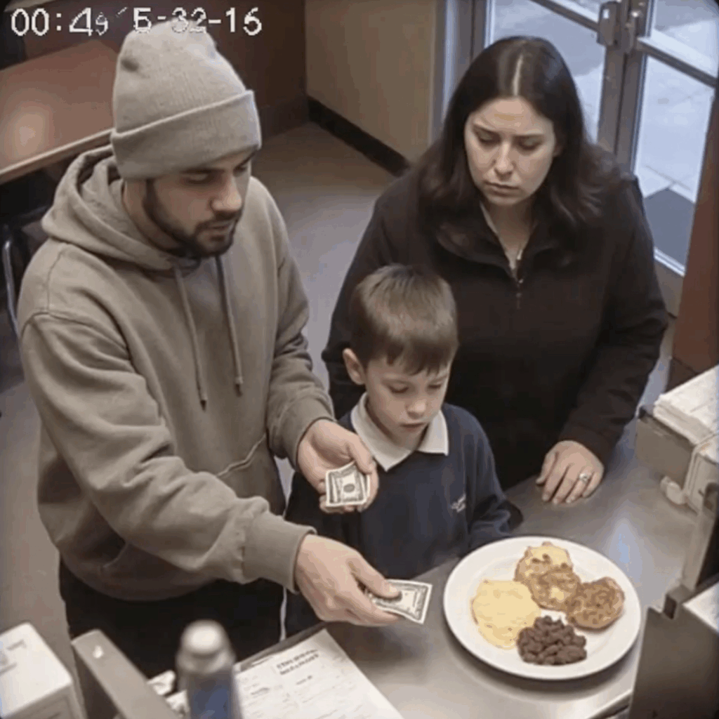 Moments later, a mother and her young son walked in. They approached the counter with hopeful eyes and five crumpled dollars in hand, asking for the breakfast special. “That’s not enough,” the cashier said flatly, waving them aside with a dismissive gesture. The young boy’s face fell, and his mother’s shoulders slumped as they turned to leave.