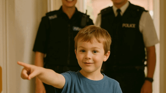 The officers knocked. A few seconds — nothing. Then the door opened, and a boy of about seven appeared in the doorway. Dark hair, clean clothes, a serious gaze like that of an adult.