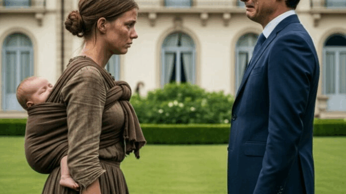 The iron gates of the Whitmore estate stood like silent sentinels, towering against the dusky sky. Few people dared to approach them. Yet that evening, a young woman with dirt-streaked cheeks and a baby strapped to her back stood trembling before the intercom.
