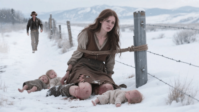 Wayat settled her carefully on the ground and looked at the babies. Snow was beginning to cover the blanket. One of them coughed. He knelt, rolled the blanket up better, adjusted the edges, and then looked at the woman, whose breathing was shallow as a mouse. “You’re with me,” he said in a low voice, firm as a promise. She didn’t answer, but a tear rolled down her icy cheek.