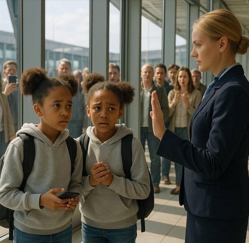 The girls stood frozen, humiliated. The announcement echoed again—“Final call for Flight 782”—as if to underline their helplessness. The woman behind the counter avoided their eyes, tapping her keyboard with unnecessary force.