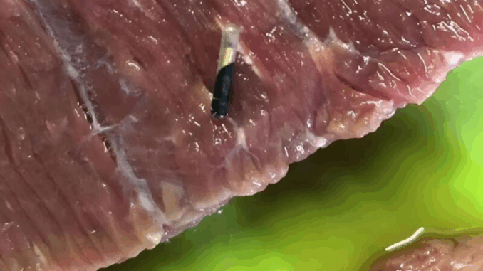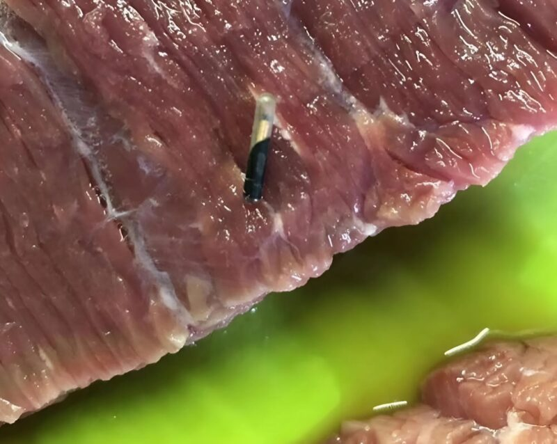 But normally, they are supposed to be removed before the meat is sold. How a piece of such a device ended up in the meat I bought remains a mystery.