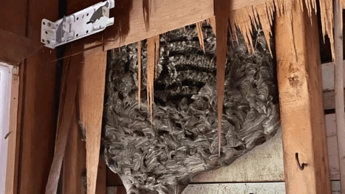 Later, we learned that wasps choose warm, sheltered places to build their nests – which is why they often settle in attics, abandoned buildings, or even inside the walls of houses.