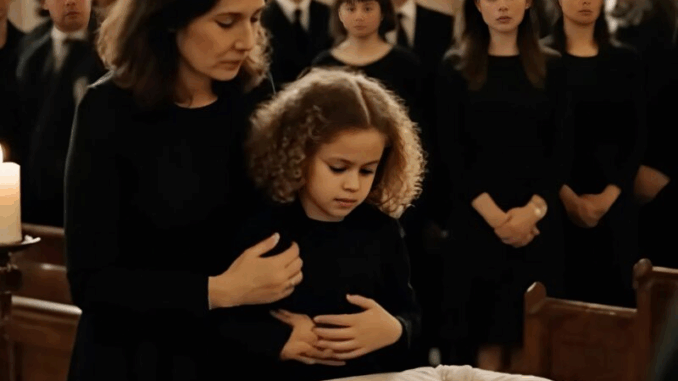By the coffin stood the mother, holding her little daughter’s hand. The girl remained silent, her curly hair falling over her face. Since the tragedy, she had barely spoken, and everyone thought the child didn’t understand what had happened.