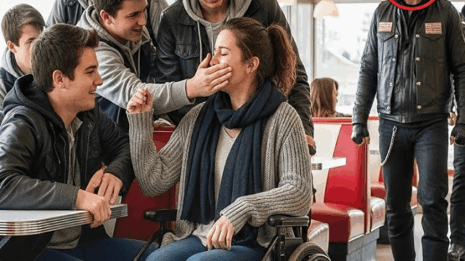 Her name was Clara, and though her face carried the quiet strength of someone who had endured much, her trembling hands betrayed her unease. The boys at the next booth didn’t just laugh at her. They crossed a line that should never be crossed. One of them slapped the plate from her lap, sending the food crashing to the tiled floor, and another pushed her wheelchair back with a mocking shove. The diner froze.