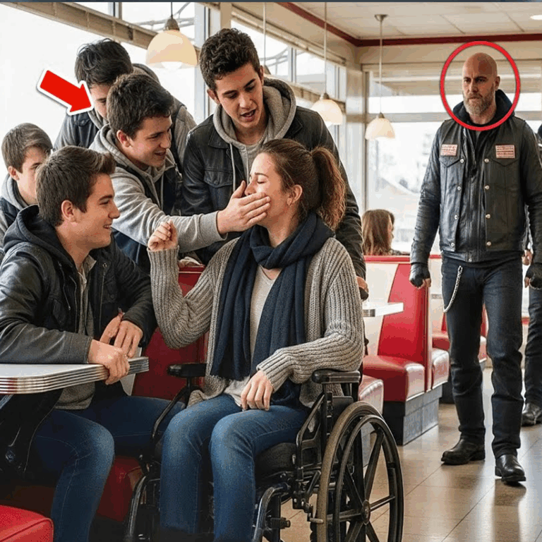 The morning sun spilled across the chrome edges of Maplewood Diner, a place where the smell of butter and syrup usually promised warmth and comfort. But on this particular day, the light couldn’t erase the darkness that crept into the hearts of a few cruel boys. At a booth near the window sat a girl in a wheelchair, her plate of pancakes resting in front of her like a fragile shield against the world.