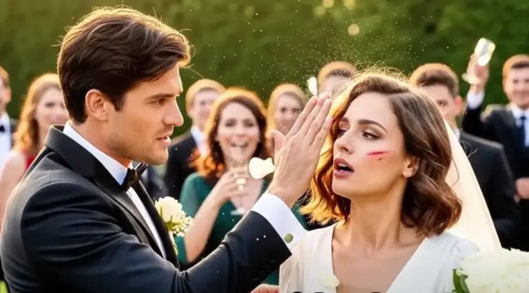 The champagne flutes trembled on their silver trays. Two hundred pairs of eyes burned into my skin. My left cheek throbbed with a heat that seemed to spread through my entire body, radiating outward like ripples in poisoned water. The string quartet had stopped mid-note, their bows frozen in the air. Even the June breeze seemed to hold its breath, waiting. My wedding veil hung crooked now, knocked askew by the force of his hand.