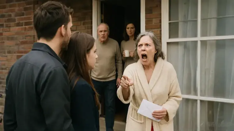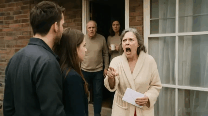 She was standing on my porch in that same fuzzy robe, holding the eviction letter, now crumpled and damp, like she’d been squeezing it for two hours straight. I opened the door but didn’t invite her in.