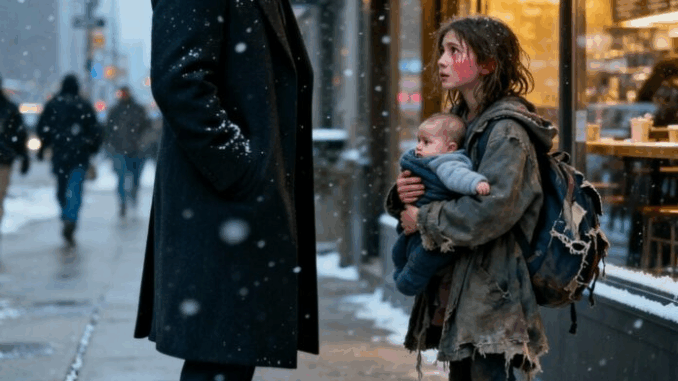 He turned. A thin girl, maybe ten years old, stood shivering on the sidewalk. Her shoes were worn out, her coat too large and frayed at the sleeves. In her arms she held a bundled infant. “My brother is hungry. Just one box of milk. I’ll repay you when I grow up.”