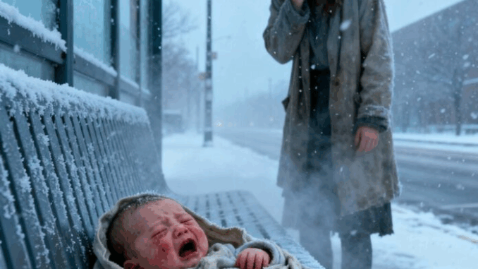 So faint I almost thought I imagined it. But there it was again—a thin, weak cry full of fear and pain. I followed the sound to a bus stop, and what I saw nearly stopped my heart: a tiny newborn baby wrapped in dirty, thin blankets, shivering violently on a cold metal bench.