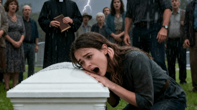 And then—just as the coffin began to lower into the ground—something faint, something impossible, reached her ears.