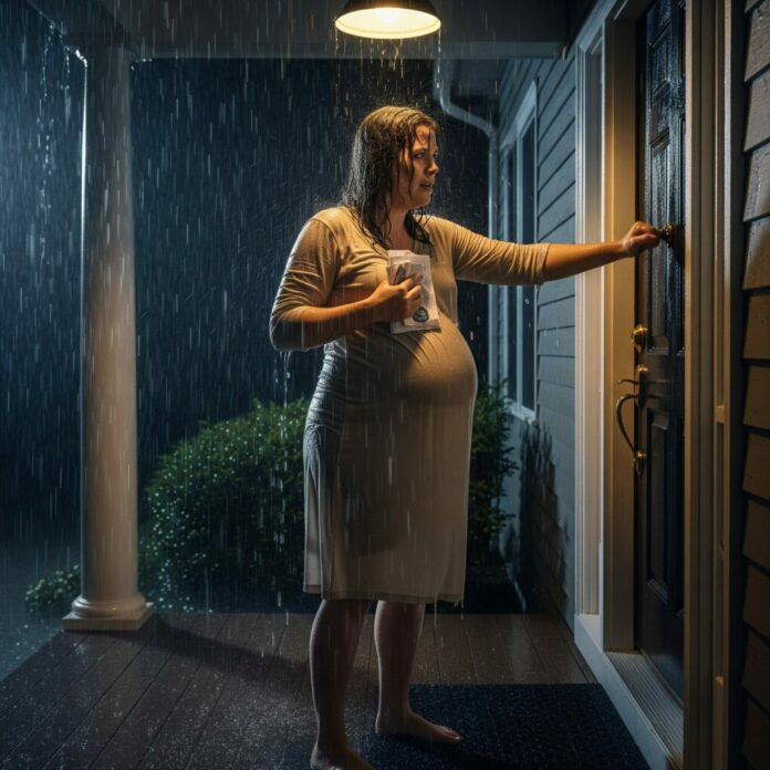The door slammed. Rain lashed down. Lola’s vision blurred as she stumbled onto the stone steps, her breath shaking. She tried calling an ambulance, but her phone flickered, soaked through.