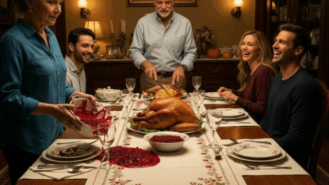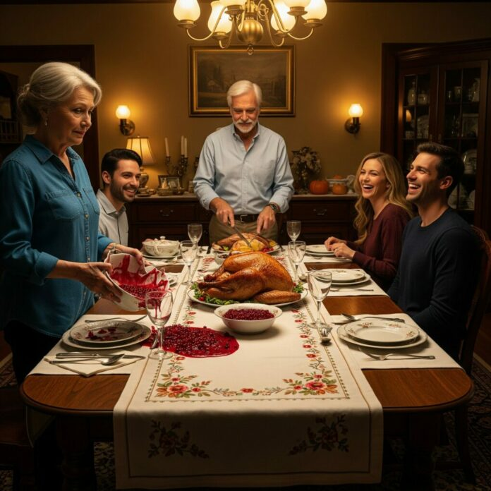 The cranberry bowl slipped from her hands and shattered across the floor. Cranberry sauce bled into the antique rug she had cared for years. But no one rushed to help her. No one even looked sorry.