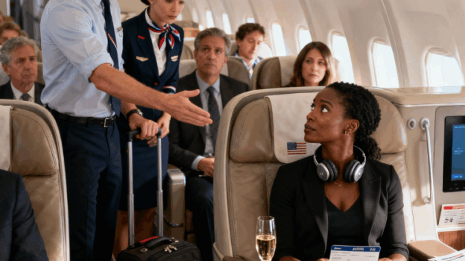 The words rang with arrogance, bouncing off the leather seats, echoing in the silence passengers pretended not to break. A businessman lowered his Wall Street Journal, just slightly. A young woman in earbuds froze her screen, her eyes sliding up. Every glance said the same thing: we’re watching.