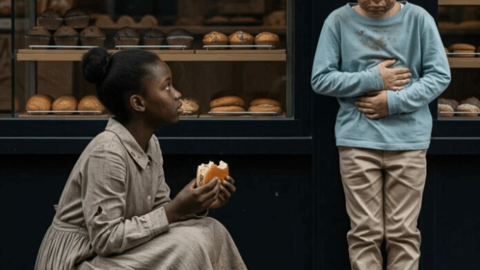 Amara hesitated, clutching the bag tighter. This was her dinner—hers and her mother’s. But the boy’s lips trembled as he whispered, “Do you… have anything to eat?”