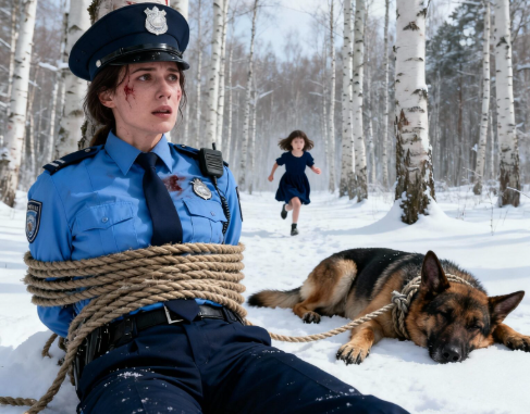 She lay half-buried in the snow, face up, her uniform torn and her hands bound with a rough rope that cut into her wrists. Each breath came out in a wisp of water, growing weaker and smaller with each breath. The cold bit at her skin, but the pain in her side reminded her that she was still alive.