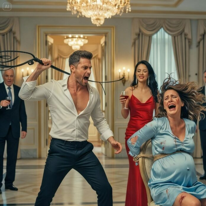 The first blows echoed through the room like thunder. Each impact weakened Claudia, making her double over to protect her baby. Blood began to stain her blue dress. No one dared to move. Valeria watched indifferently, sipping champagne.