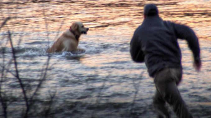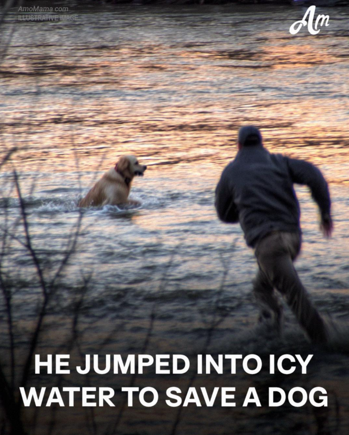 Down below, in the half-frozen river, a golden retriever was thrashing against the current, panic in every movement. The ice was thick in places, broken in others. The dog kept going under.