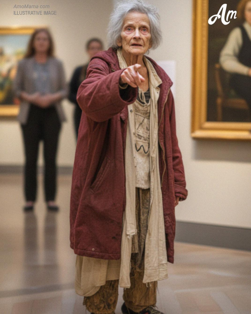 But the woman didn’t flinch. Her face didn’t change, except for a tiny lift in her chin. She raised a trembling hand and pointed to the bottom right corner of the painting.