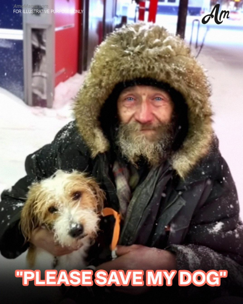 He was huddled under a threadbare blanket, his face red from the biting cold. Beside him sat a small, scruffy dog, trembling as it pressed against his side.