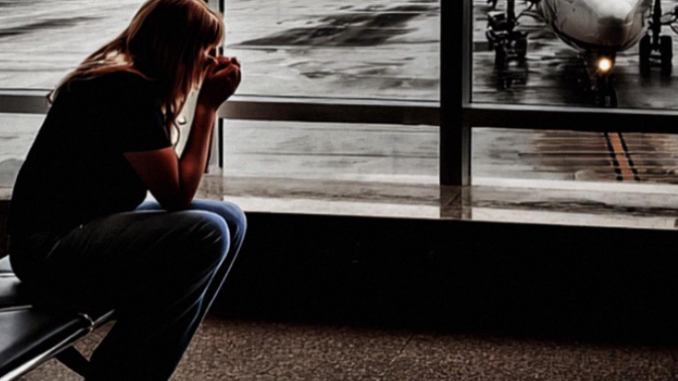 She was sitting on the floor near a massive window overlooking the runway, her back against the wall, knees pulled up to her chest. She was clutching a brown leather bag like it was the only thing keeping her tethered to the earth, and she was crying. It was this raw, broken sobbing that made her whole body shake.