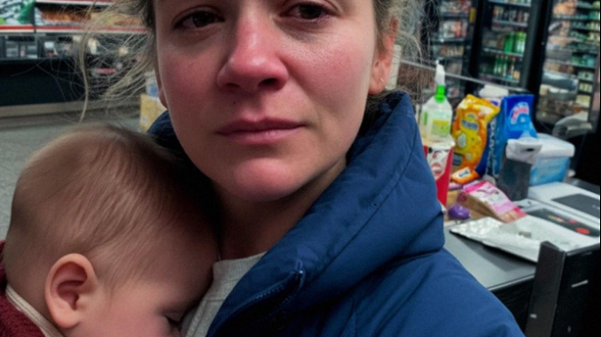 She didn’t say anything at first, just walked slowly down the aisles while balancing the kid on her hip. She picked up a small carton of milk, a loaf of white bread, and a pack of diapers. Nothing extra.