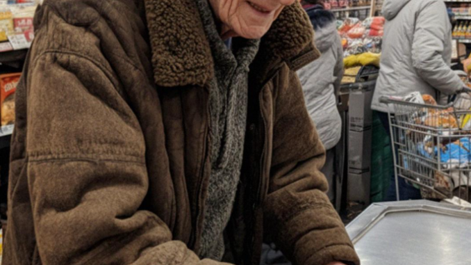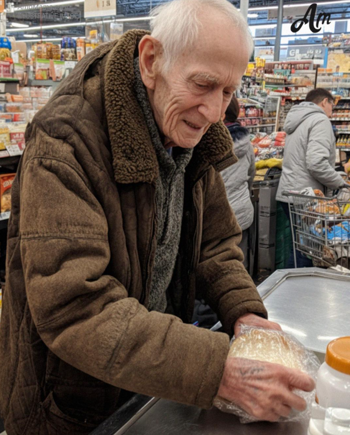 His hands trembled as he placed a loaf of bread, a jar of peanut butter, and a small carton of milk on the belt — items so basic that they almost hurt to look at.