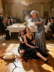 Behind us, the party didn’t recover. You could feel it collapsing—the way lies collapse when they’re exposed under chandeliers. The way people scramble for excuses and dignity. The way silence turns from polite to condemning.