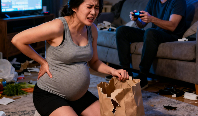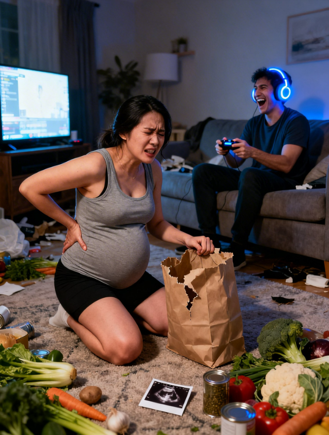 I stood there, one hand braced on my belly, the other pressed against the wall, the grocery bags at my feet like evidence. My mind did something strange: it went very quiet, like someone turned down the volume on the world. I heard the laughter, but it sounded far away, muffled by a thick layer of disbelief.