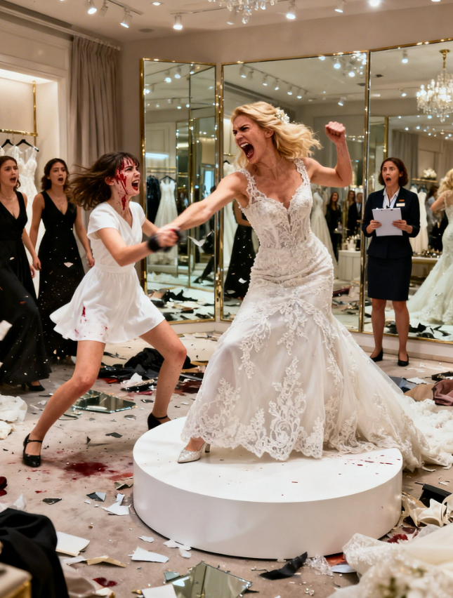The bridesmaids moved like ghosts, whispering apologies to no one. One of them glanced at me with a look that might have been sympathy, or maybe just discomfort. The consultants disappeared behind a curtain, leaving the three of us—me, Melissa, and the mirrors that didn’t know where to look.